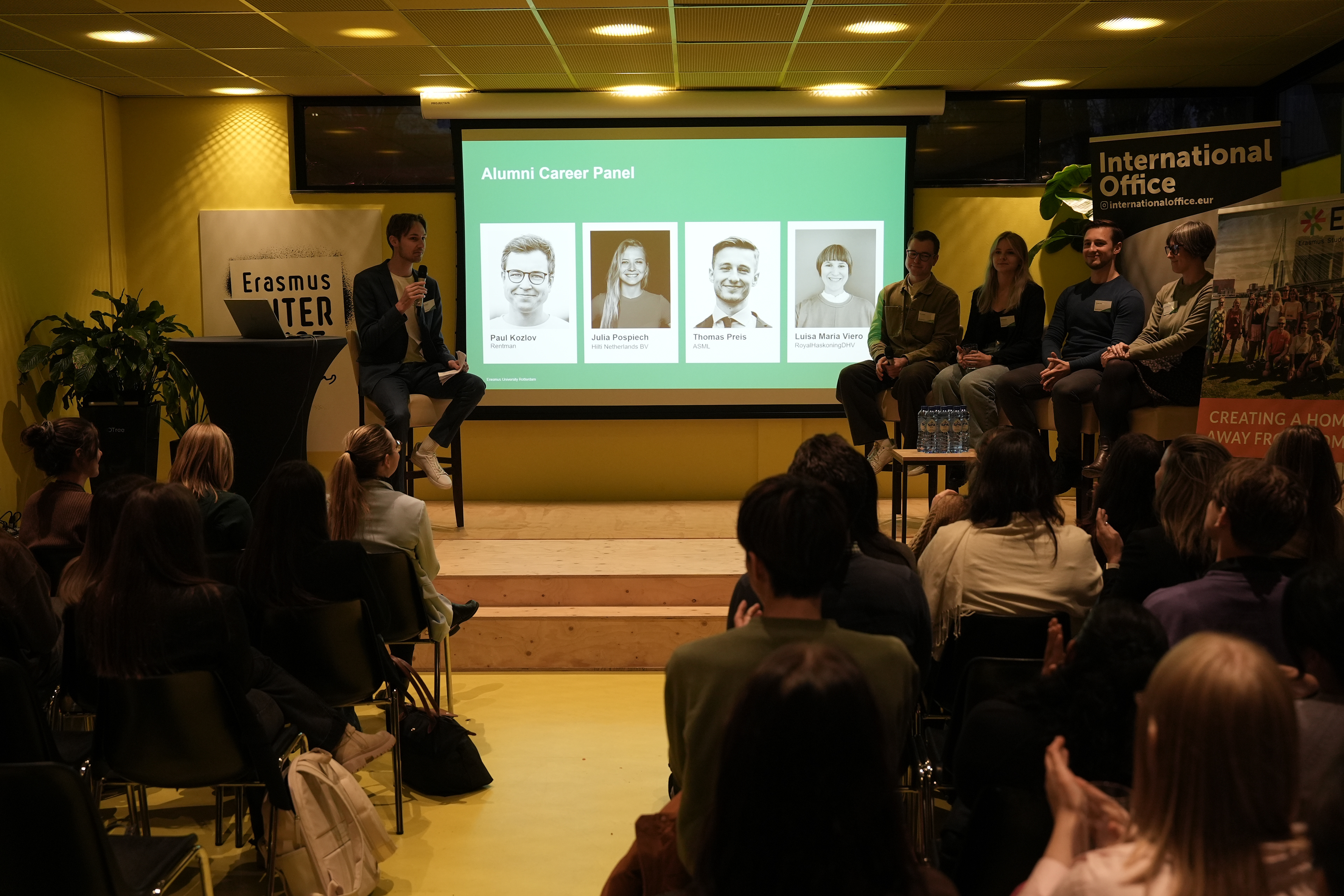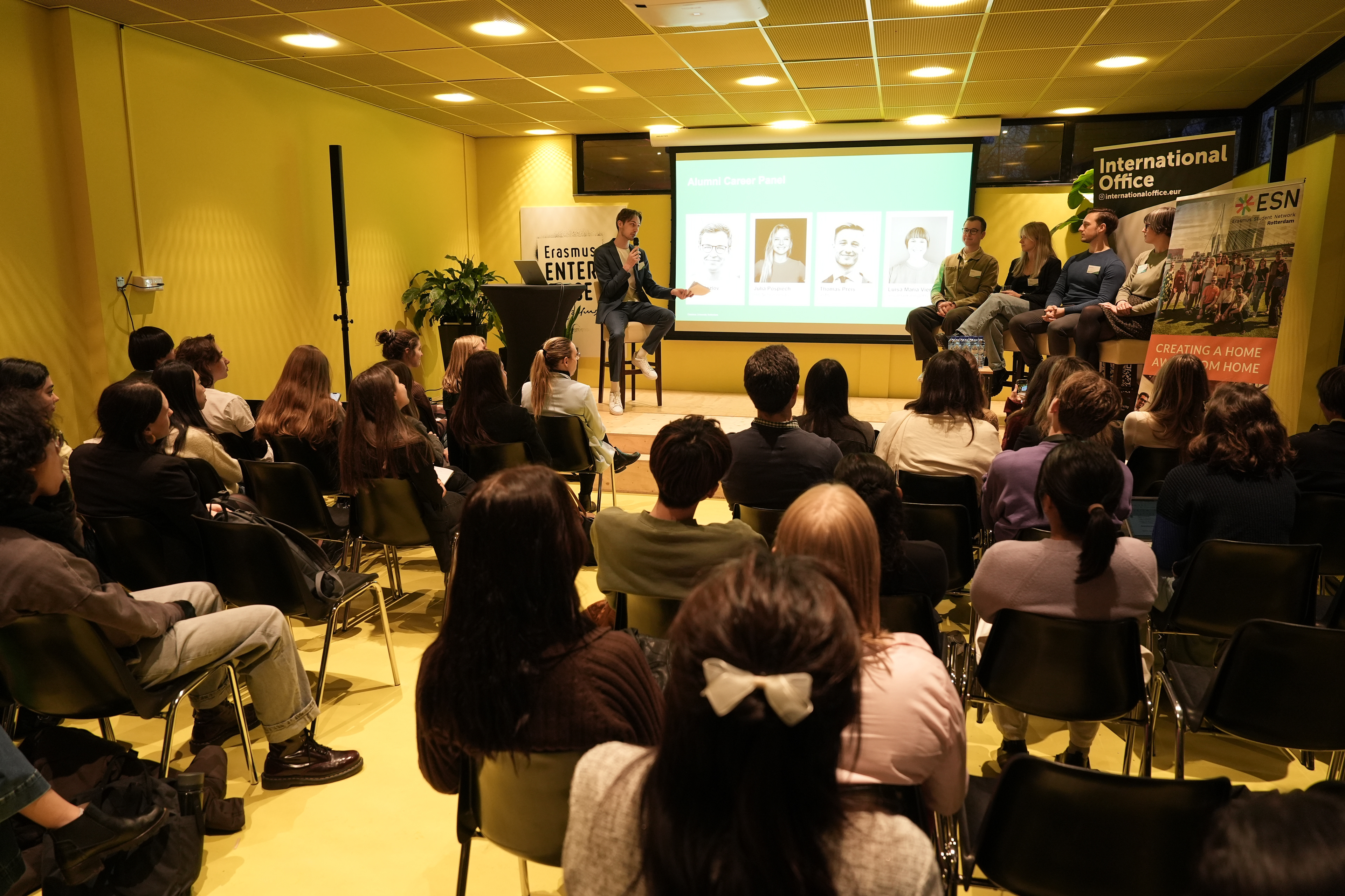 I hosted panel discussions for different organisations such as Erasmus Enterprise, Erasmus career cafe, Erasmus International Office. Guests included speakers from The Ocean Clean up, the United Nations or Coca Cola. my tasks lied in preparing the conversation, doing research on the guests and ensuring a smooth and insightful discussion for the audience. a closer look at one of the events can be found here: https://www.eur.nl/en/events/kick-start-your-career-2024-11-20