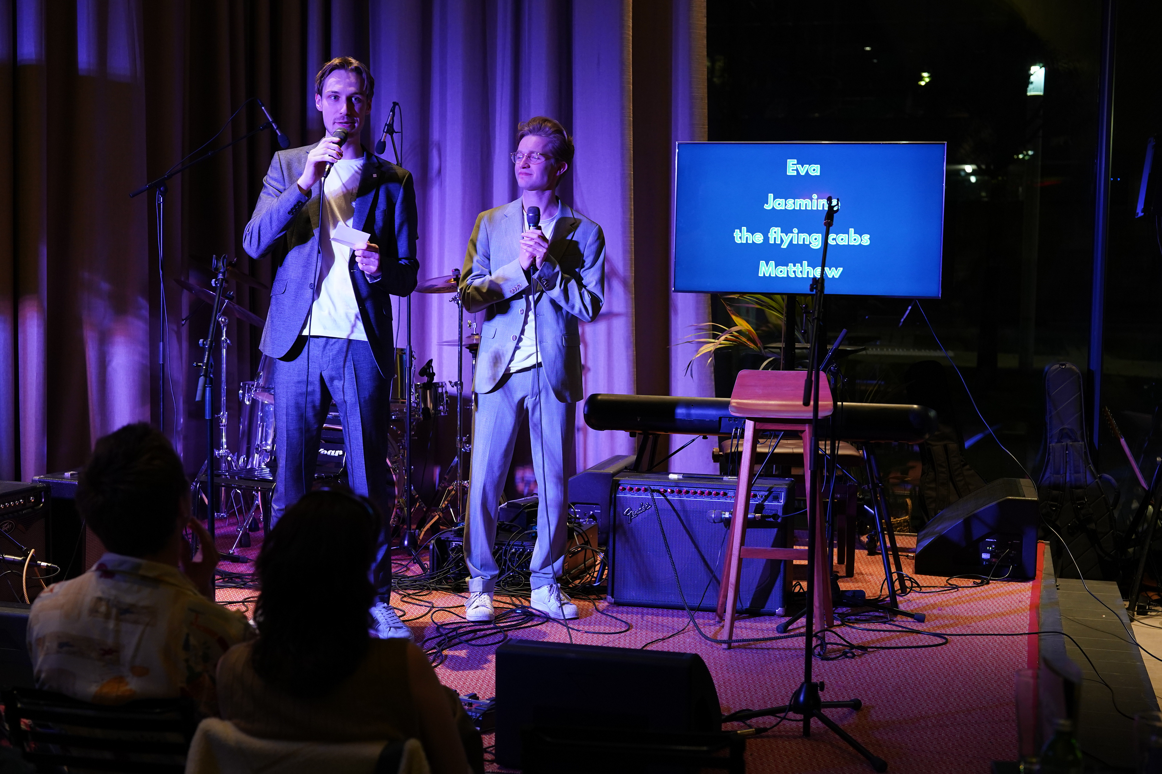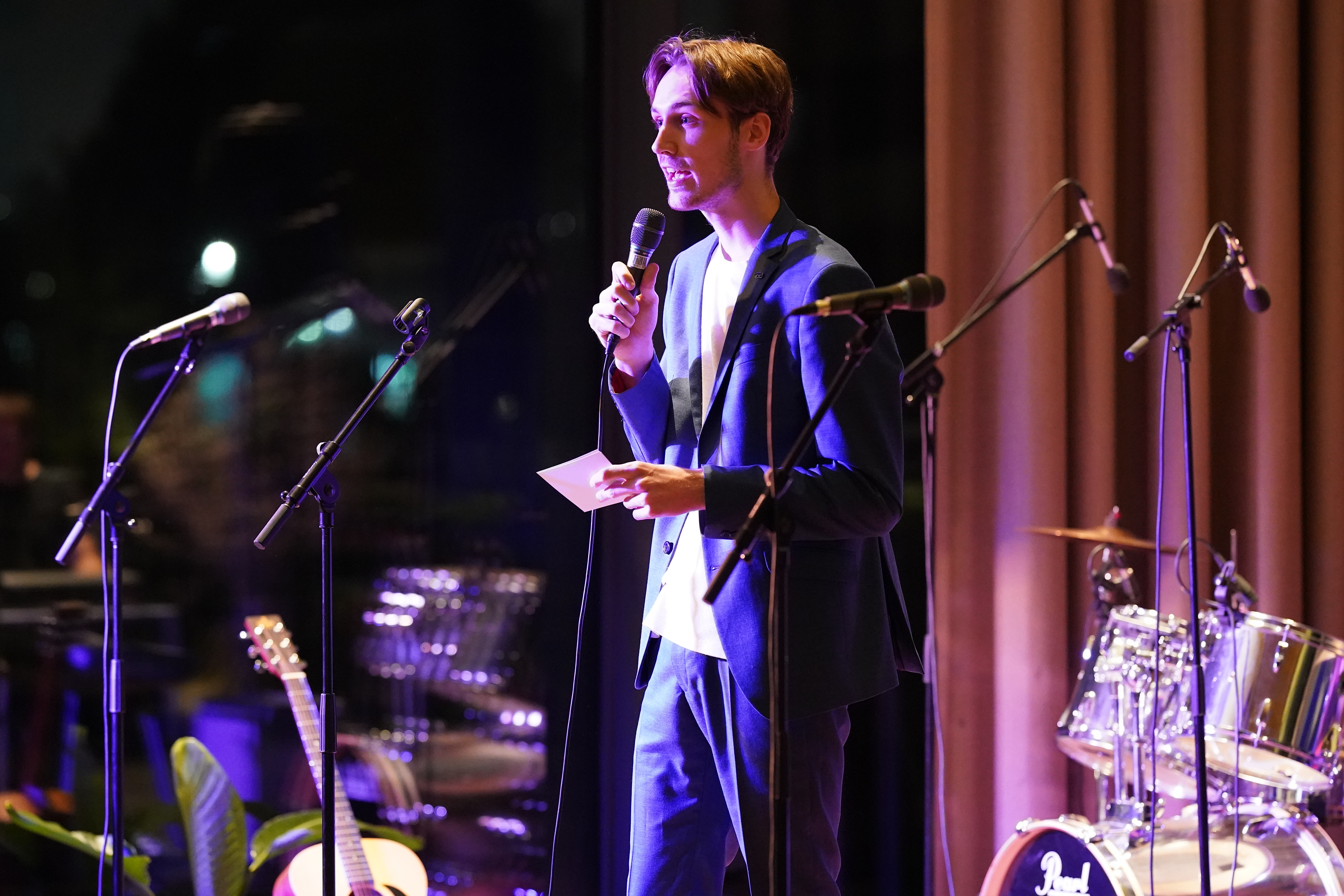 I am hosting the monthly open stage nights organised by Studium Generale and ESN Rotterdam. During the show, an audience of roughly 200 people is watching students preforming all kinds of talents ranging from musicians, magicians, comedians etc. I am also offered the freedom to invite co-hosts to collaborate with other presenters and come up with new concepts for the show.